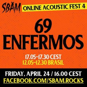 Pese a la situación de público conocimiento y lo difícil que puede ser sobrellevar el aislamiento para prevenir el COVID-19, muchas bandas y sellos nos hacen pasar días menos aburridos con sus propuestas de eventos online. En este caso nuestros amigos de Brasil 69 Enfermos participará este viernes 24 de abril desde las 11.00 horas (GMT-3) en el evento ONLINE ACOUSTIC FEST 4 organizado por el sello Austriaco SBÄM Records.